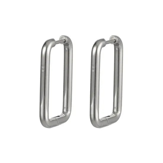 Stainless Steel White Toned Rectangular Hoop Earrings